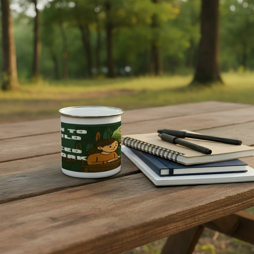 This 12oz enamel “Born to Be Wild. Forced to Work 9–5” mug is made for outdoor lovers trapped behind desks, van-life dreamers stuck in traffic, and anyone whose spirit lives in the wild while her diary says otherwise. Lightweight, tough, and ready for real adventure, it’s perfect for campfire brews, desk-side rebellion, and mornings that need both caffeine and emotional support.