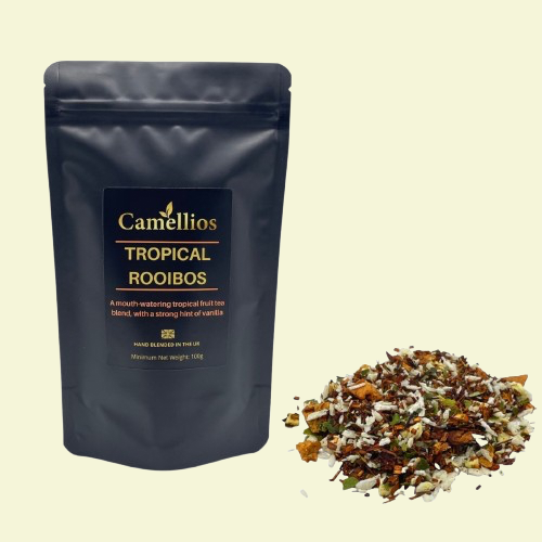 TROPICAL ROOIBOS: A mouth-watering tropical fruit tea blend, with a strong hint of vanilla.