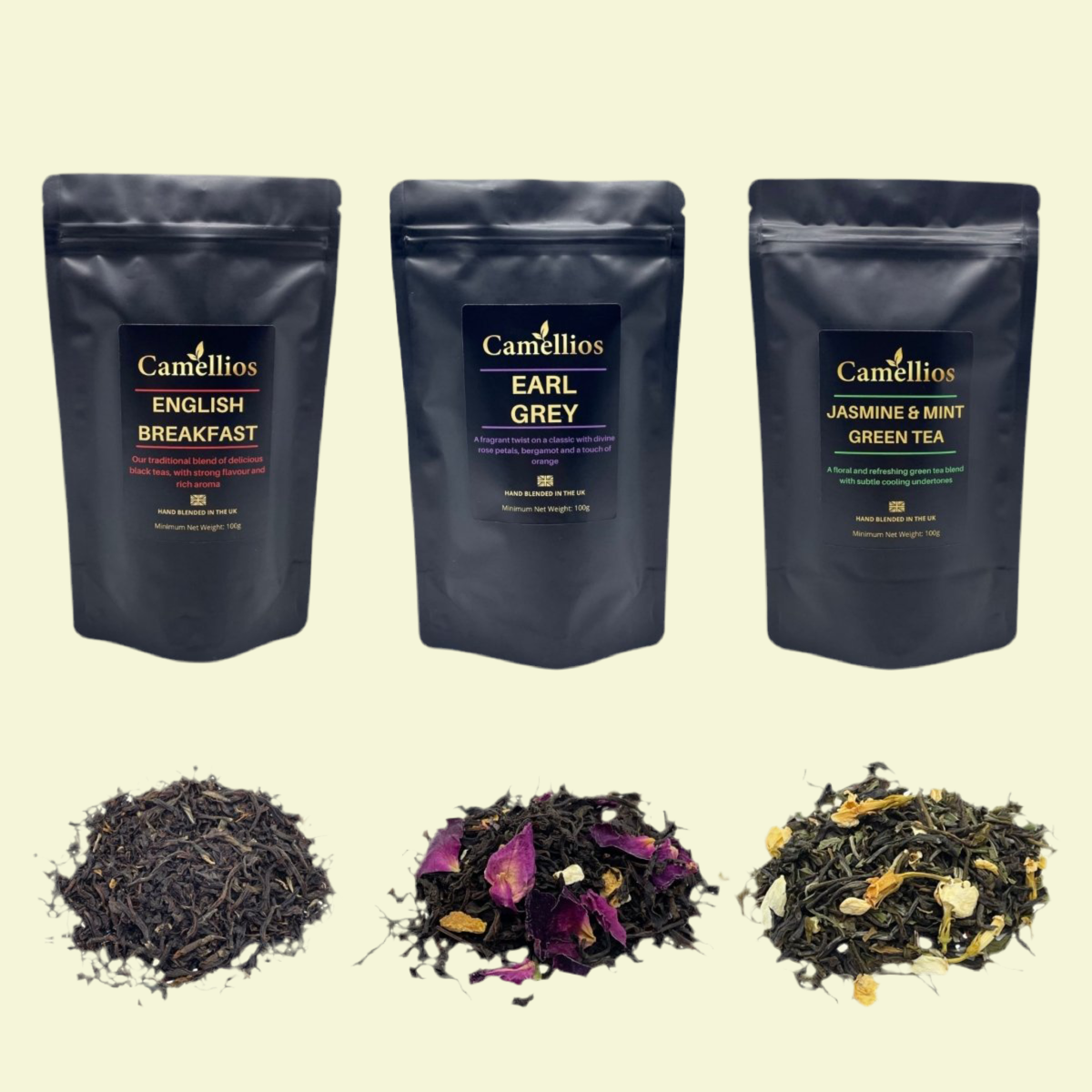 A selection of three premium loose-leaf teas. Hand blended in the UK.
