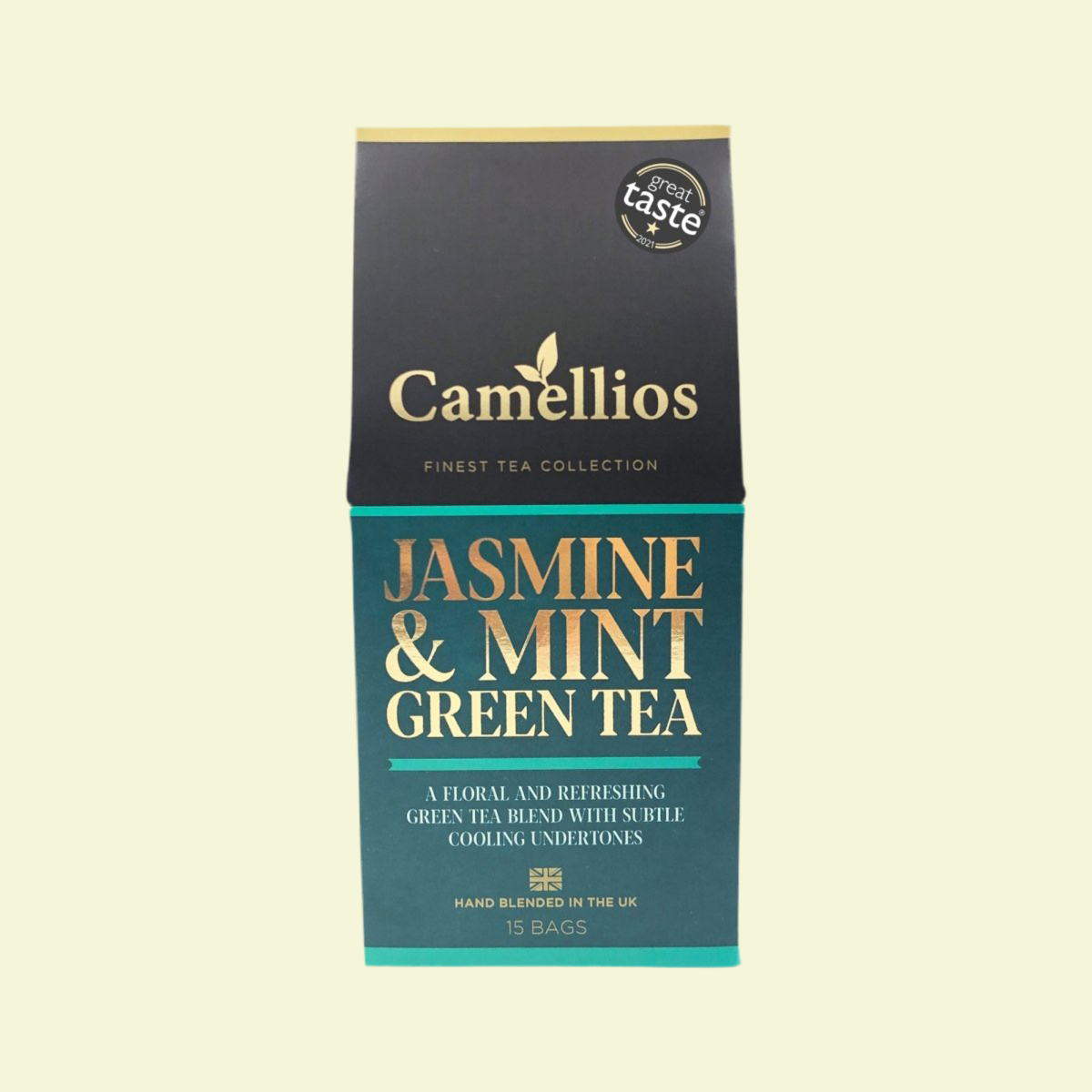 Jasmine & Mint Green Tea, 15 Pyramid Tea Bags - A floral and refreshing green tea blend with subtle cooling undertones.