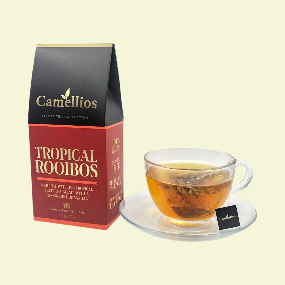 - TROPICAL ROOIBOS: A mouth-watering tropical fruit tea blend, with a strong hint of vanilla.