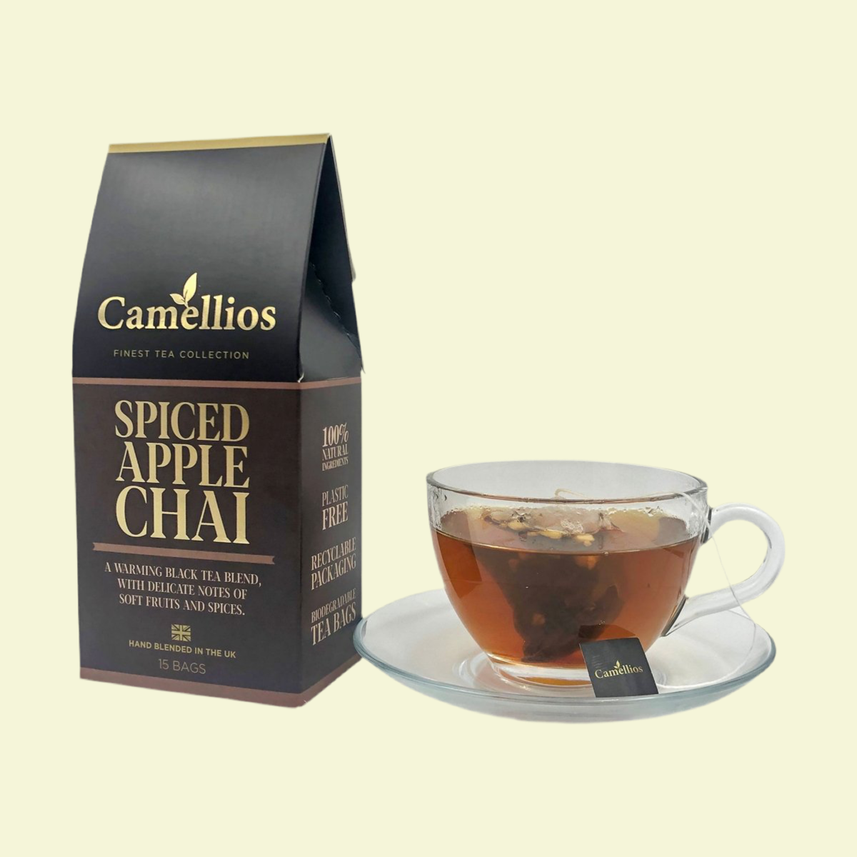 Spiced Apple Chai,15 Pyramid Tea Bags - A warming black tea blend, with delicate notes of soft fruits and spices.